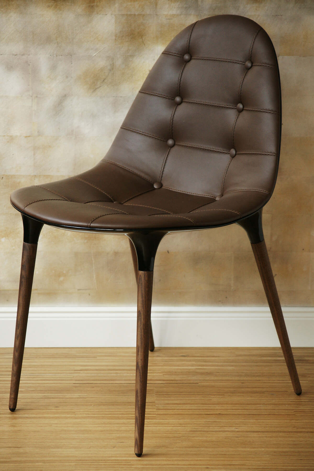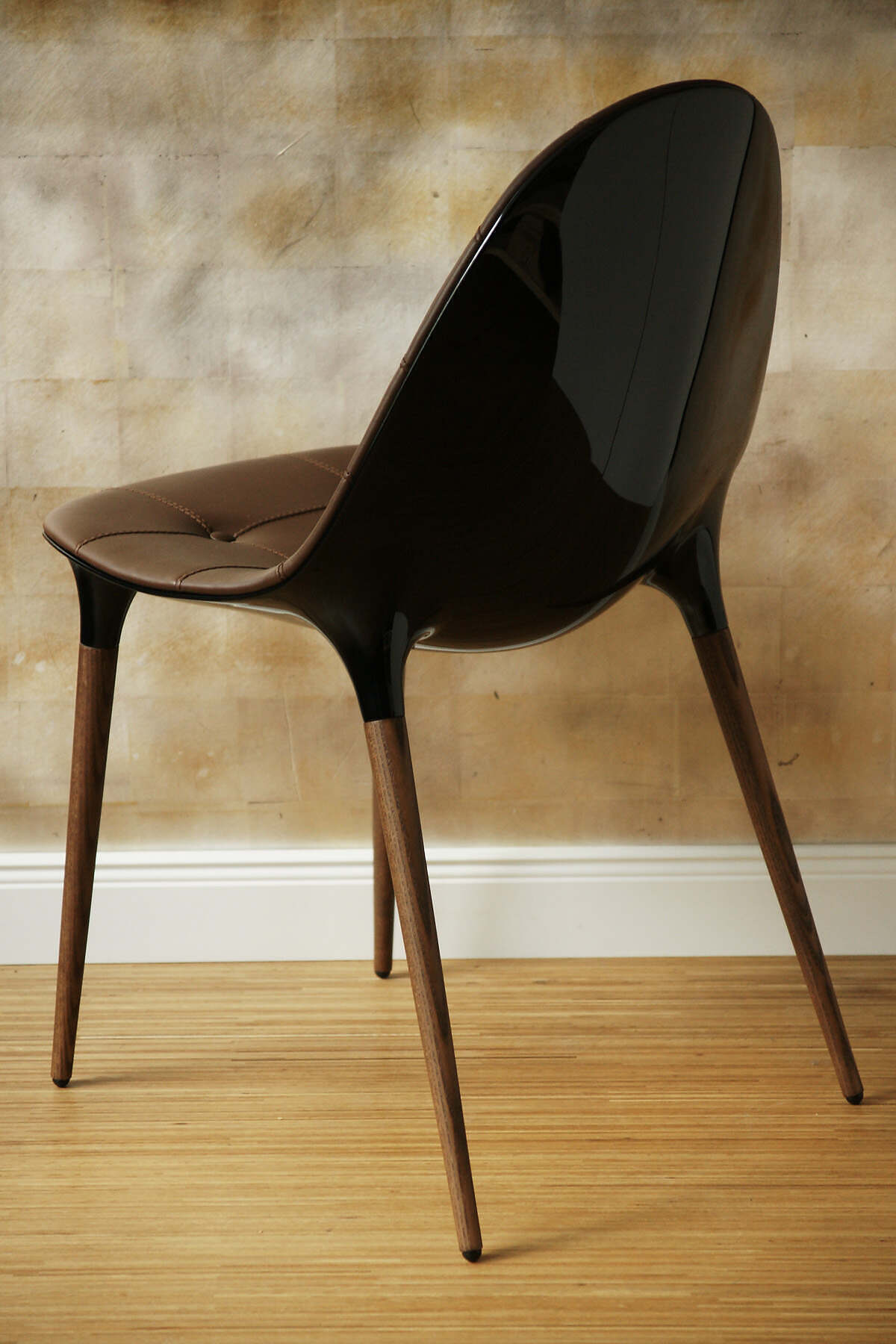 Kunststoffschale Füße Holz Leder dunkelbraun